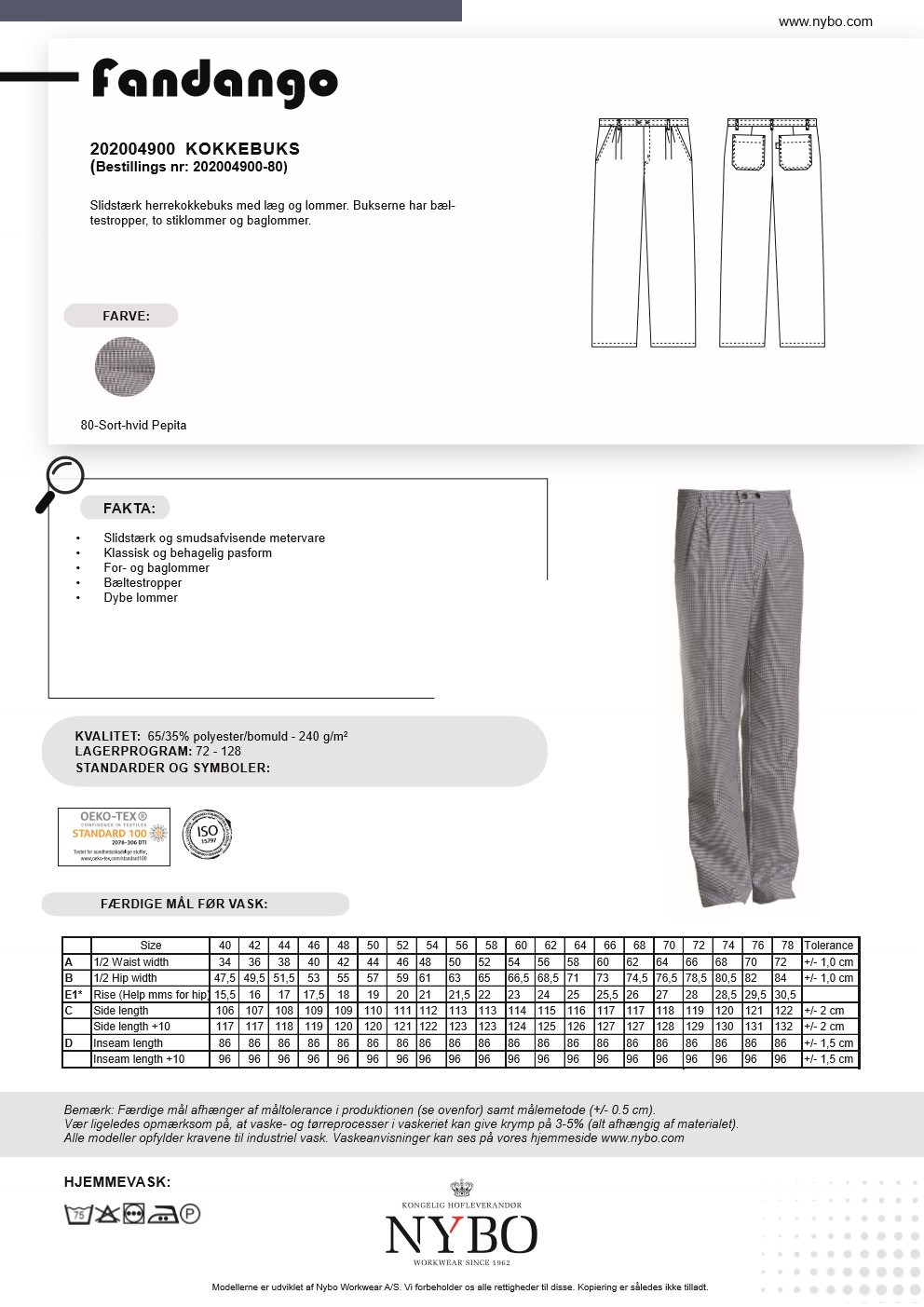 Slidstærk herrekokkebuks med læg og lommer. Bukserne har bæltestropper, to stiklommer og baglommer