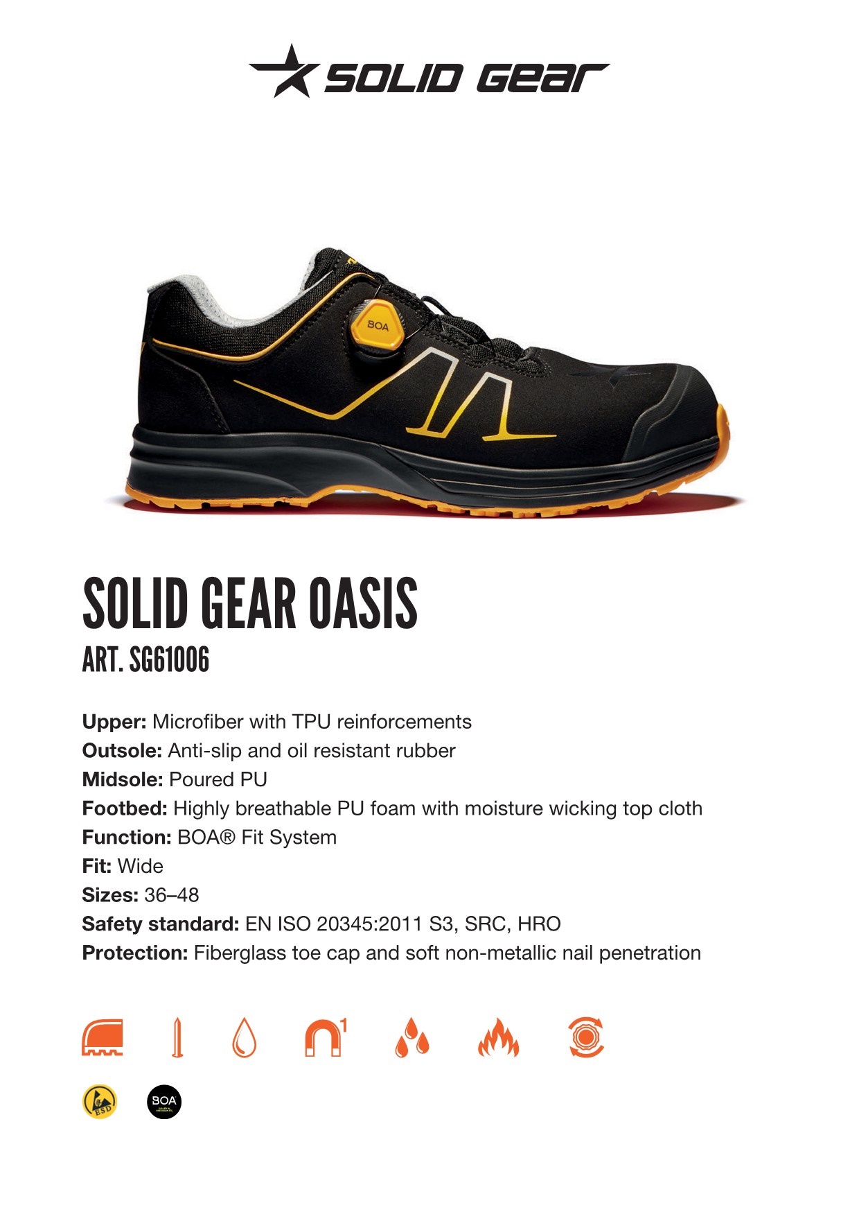 - EN ISO 20345:2011 S3, SRC, HRO